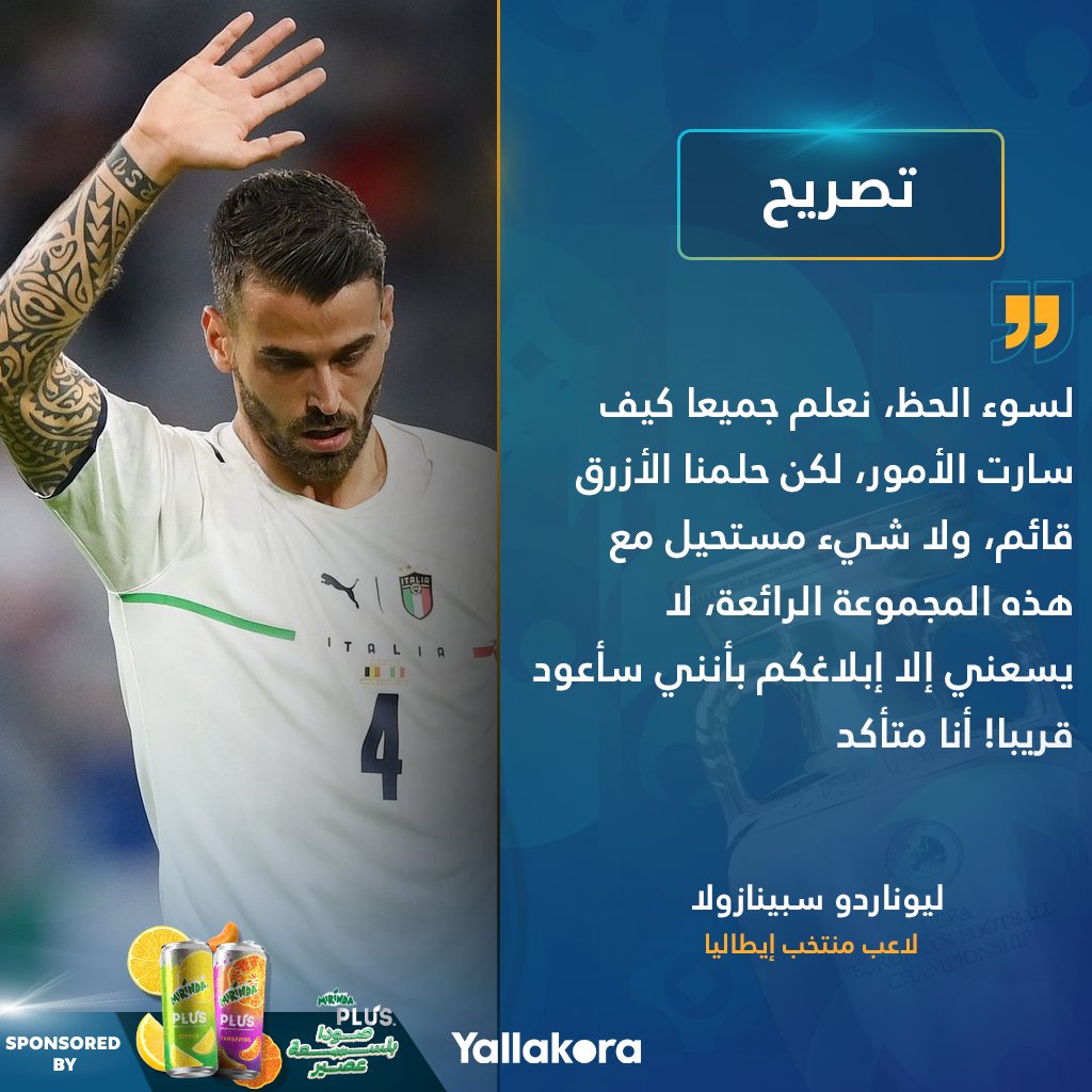 ليوناردو سبينازولا. إيطاليا يورو 2020. أكد اللاعب الإيطالي ليوناردو سبينازولا أنه يتطلع إلى التعافي بأسرع شكل ممكن بعدما تسببت إصابته بتمزق في وتر أخيل في إنهاء مشاركته ببطولة كأس الأمم الأوروبية لكرة القدم يورو 2020. منذ 61 يوم.