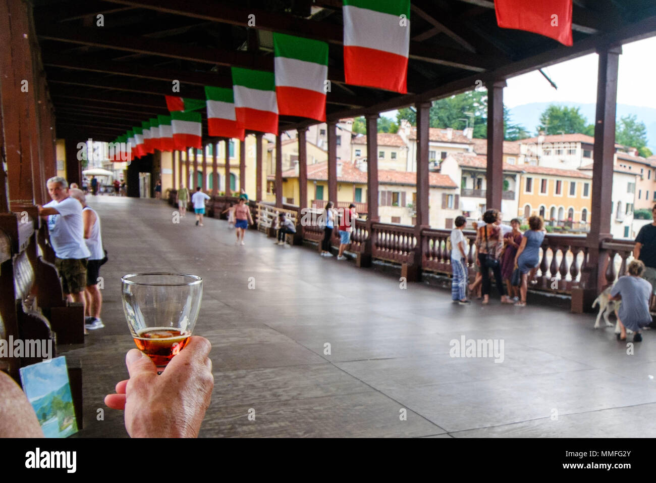 A Woman Is Drinking The Famous Mezzo E Mezzo Cocktail Of The Historic Grapperia Nardini On The Ponte Degli Alpini In Bassano Del Grappa Stock Photo Alamy