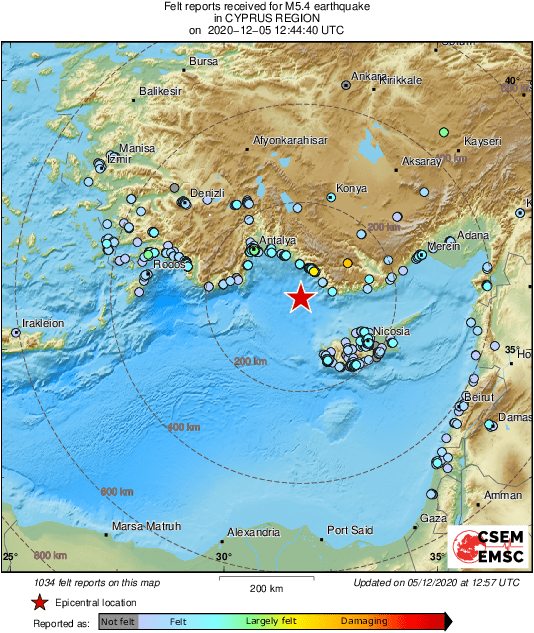 Emsc On Twitter 14 Min Ago An Earthquake Offshore Cyprus Turkey Was Also Felt In Israel Lebanon Syria At This Stage No Report Of Significant Damage Stay Safe Https T Co A0lv4mffbd