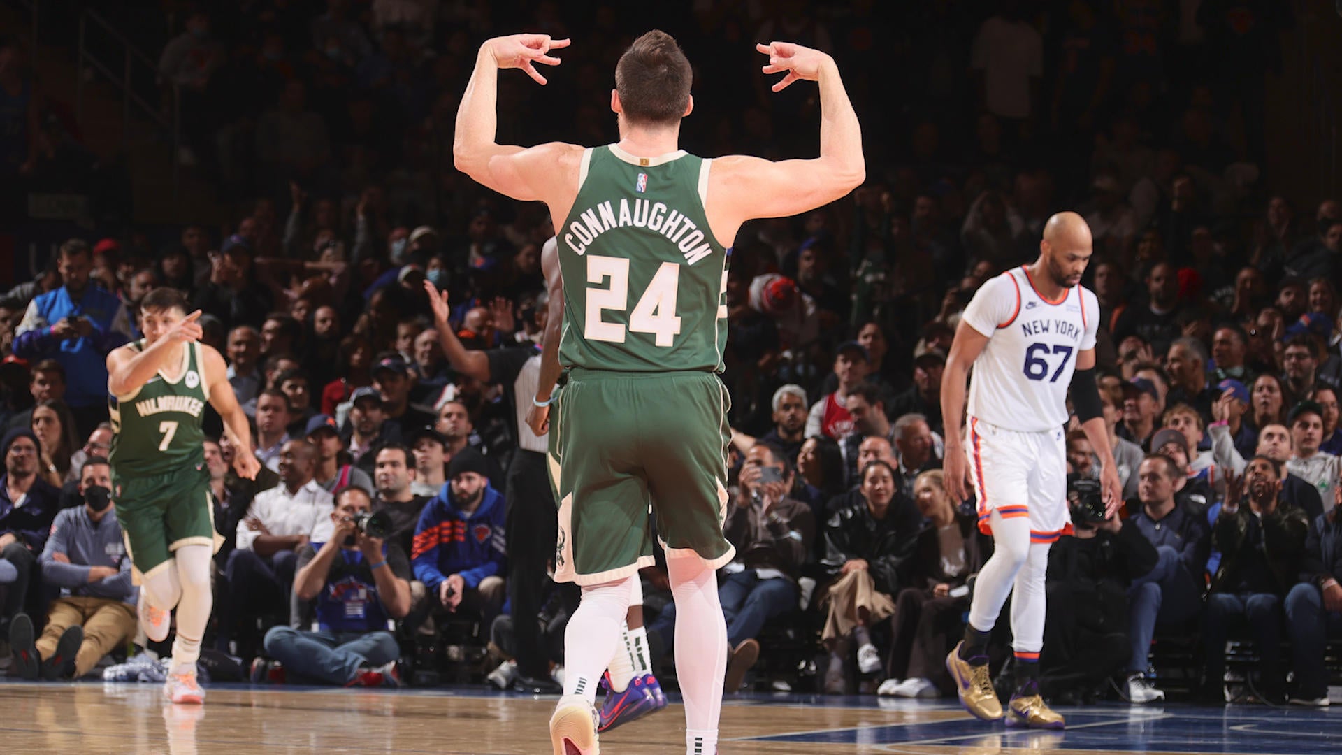 The New York Knicks bounced back from a huge early deficit to prevail 113-98 against the Milwaukee Bucks. Knicks vs Bucks. Jrue Holiday with a 3-pointer vs the New York Knicks.