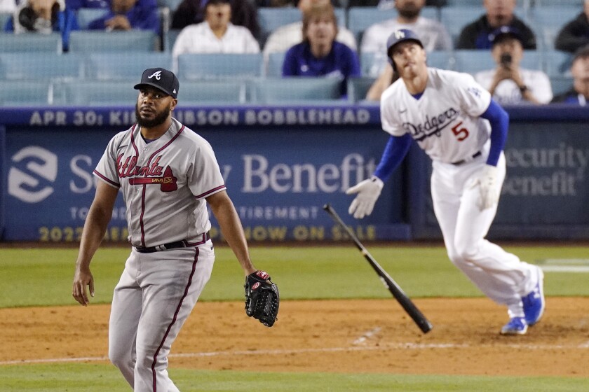 In his first at-bat against his former team Dodgers first baseman Freddie Freeman took Braves starter Huascar Ynoa deep for his first home run with LA. Atlanta Braves relief pitcher and former Dodgers closer Kenley Jansen acknowledges the Dodger Stadium crowd before Mondays game.